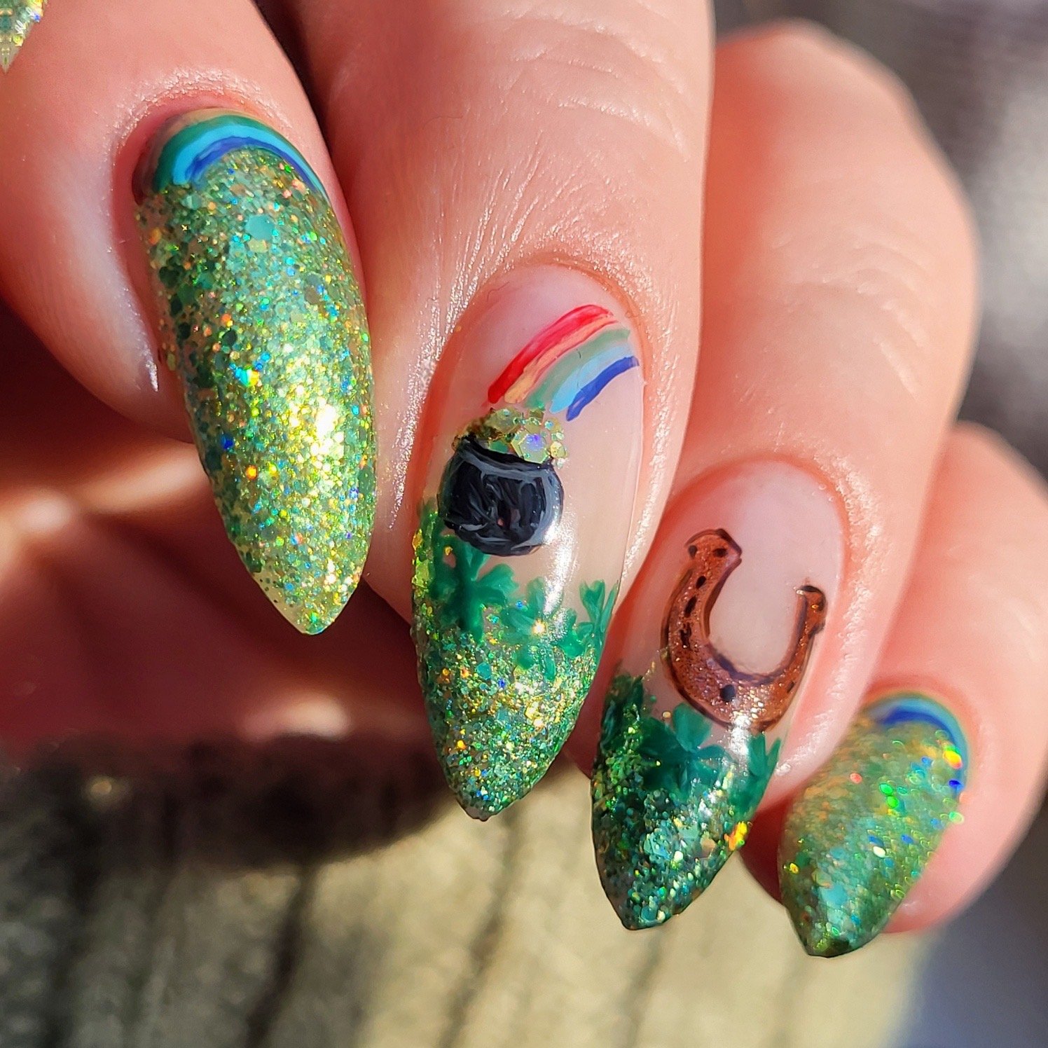 This polish sure is perfect to celebrate St. Patric's Day but also fantastic for Spring and Summer. Its extremely sparkly and very joyful.