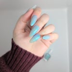 A soft icy blue with silver reflective glitter and a frosted finish.
