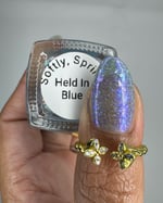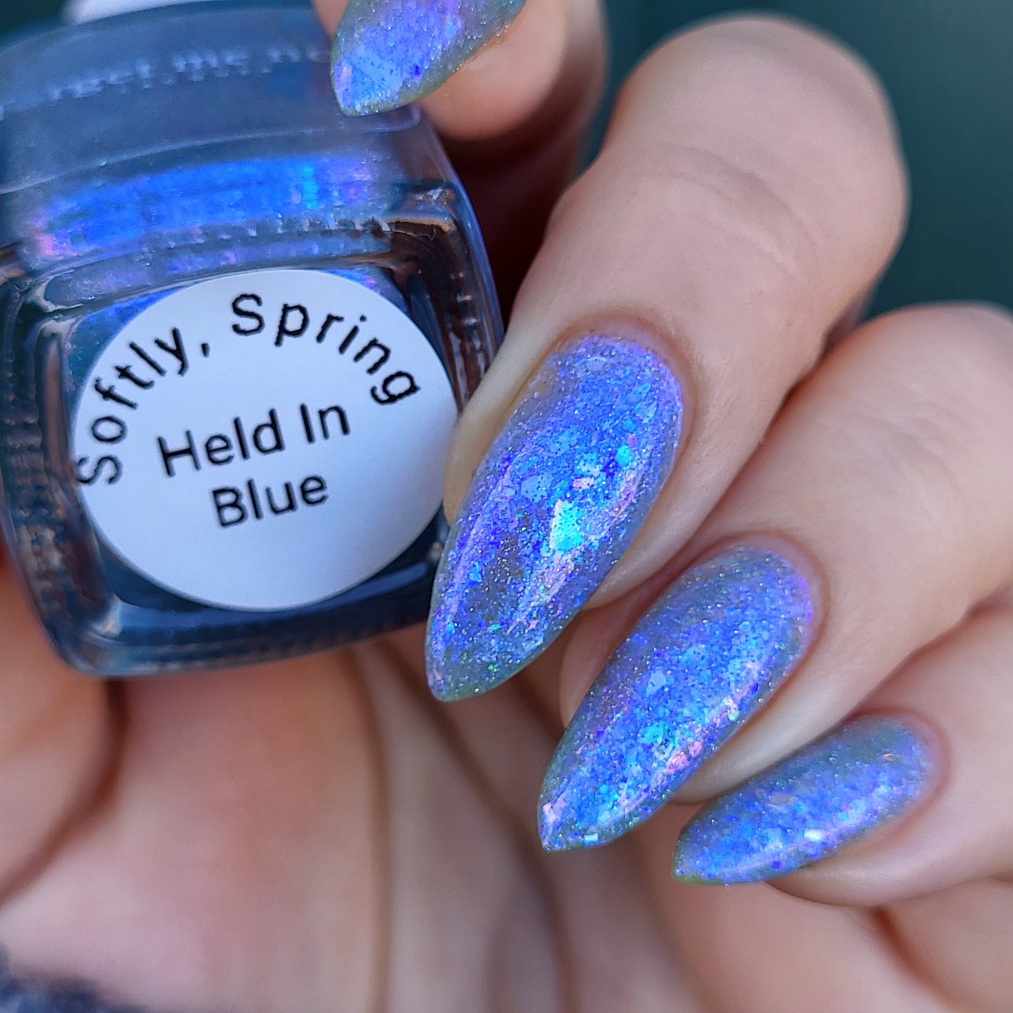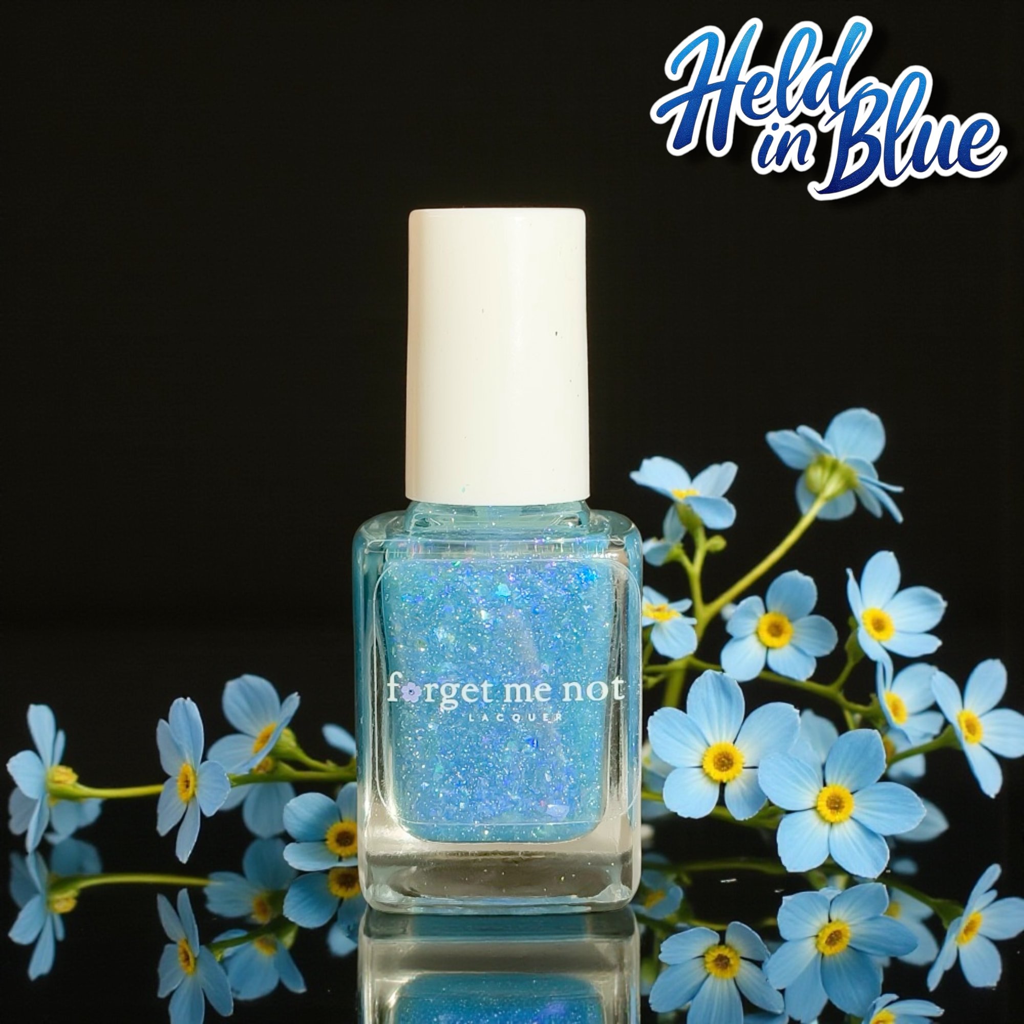 Held in Blue is inspired by the first blue blossoms of spring — quiet, hopeful, and impossible to forget.