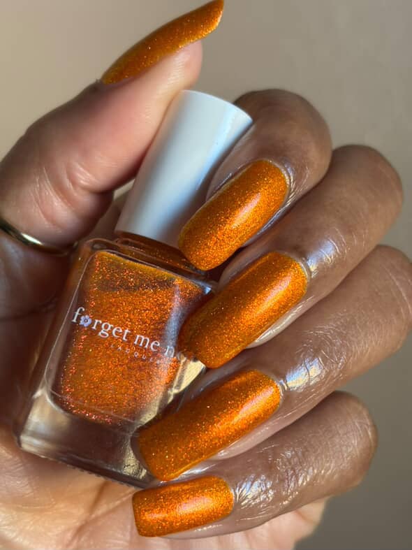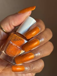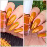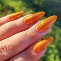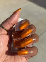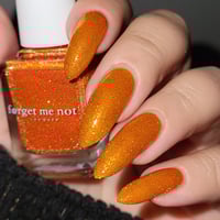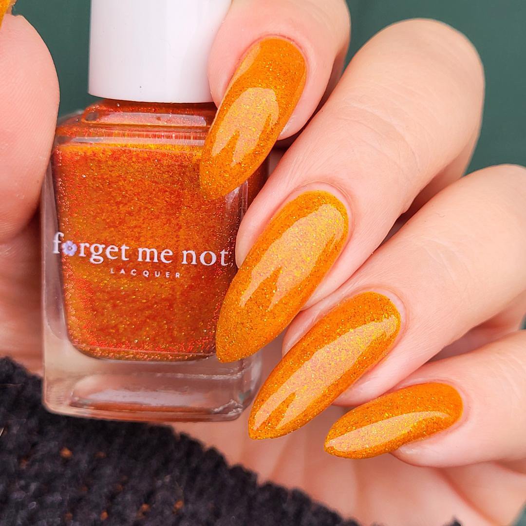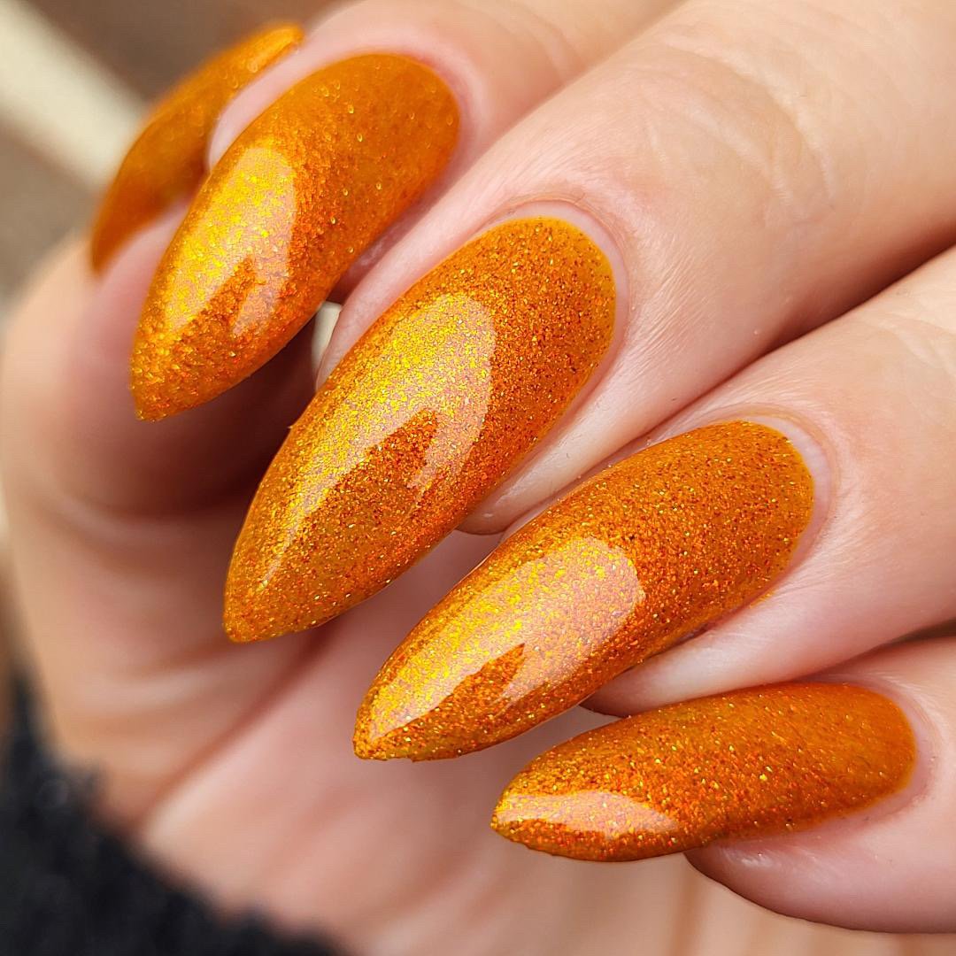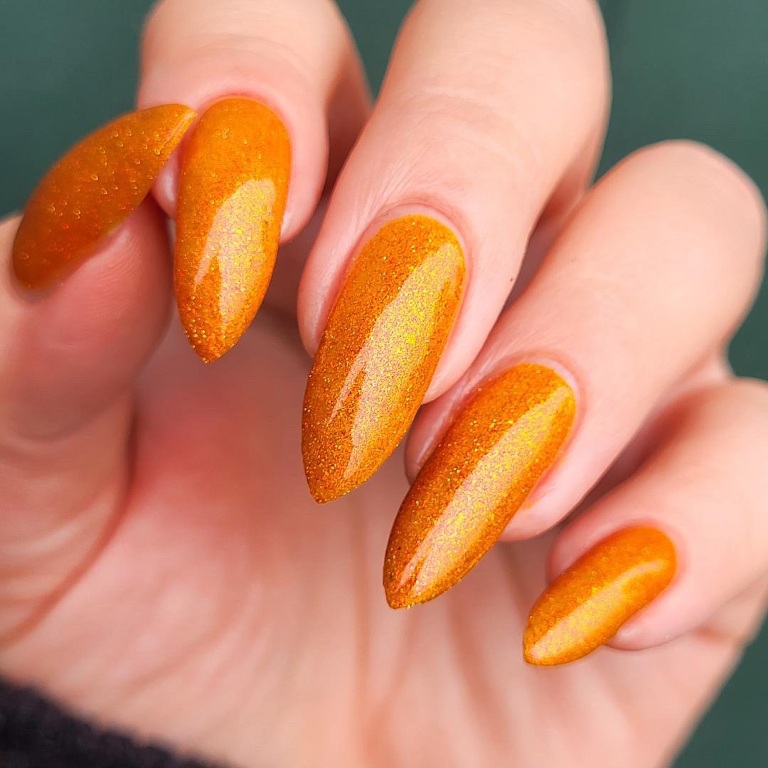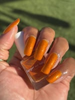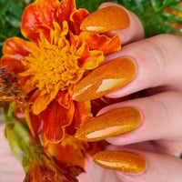 Bottling the beauty of the season! This polish features a saturated yellow-to-orange jelly base that sets the stage for a spectacular show. The dense, dancing shimmer moves seamlessly from hot orange to sunlit gold, finished with a pop of red reflective glitter that truly lights up in the flash. This polish is the epitome of fall foliage, late sunflower blooms or warm sunshine on a chilly autumn morning, making a bold, fiery statement.