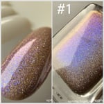 #1 - Warm cocoa brown base with a strong violet-blue shifting shimmer and fine scattered sparkle.