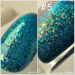 #5-Airy blue crelly base filled with iridescent flakes, and soft rainbow shimmer.