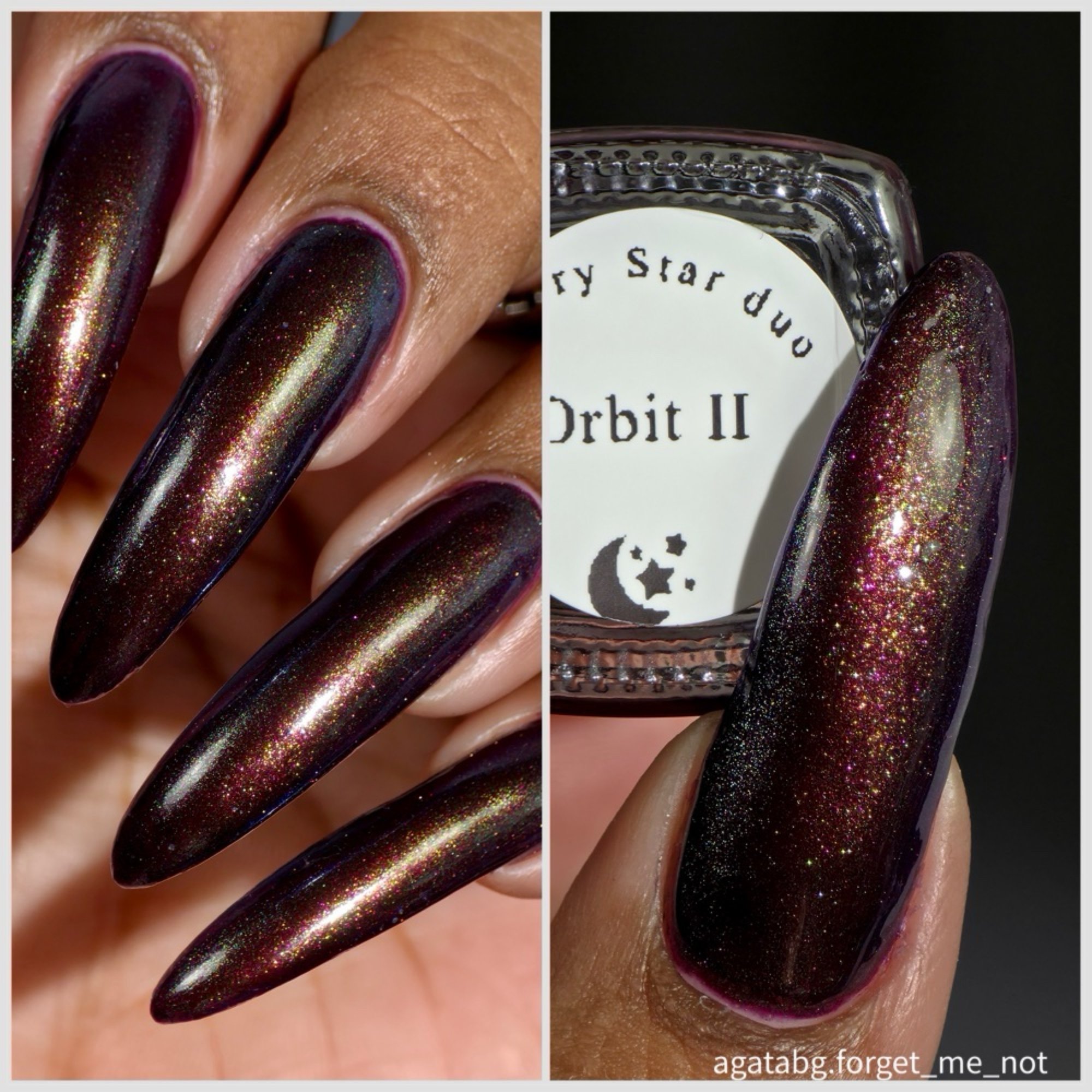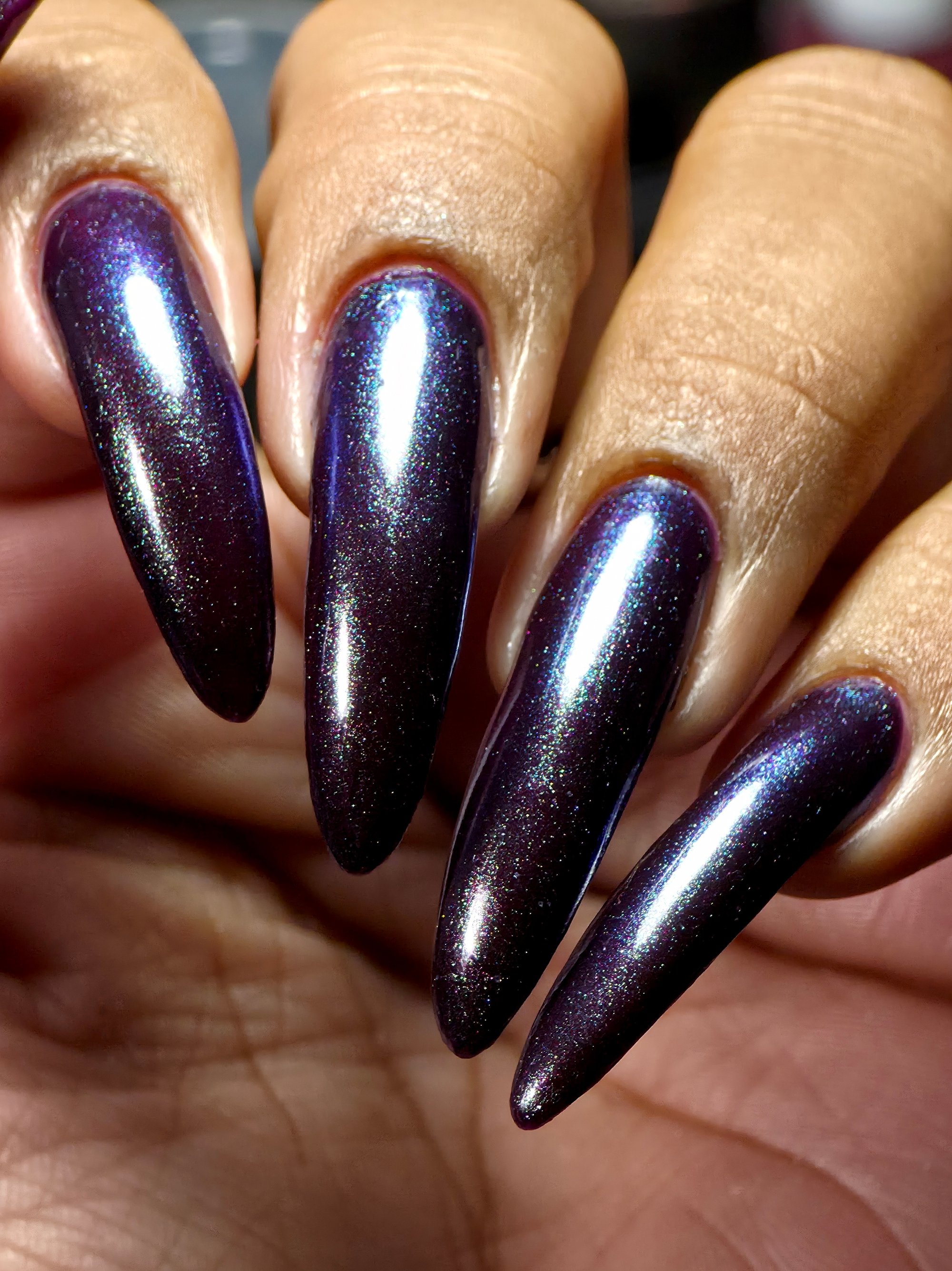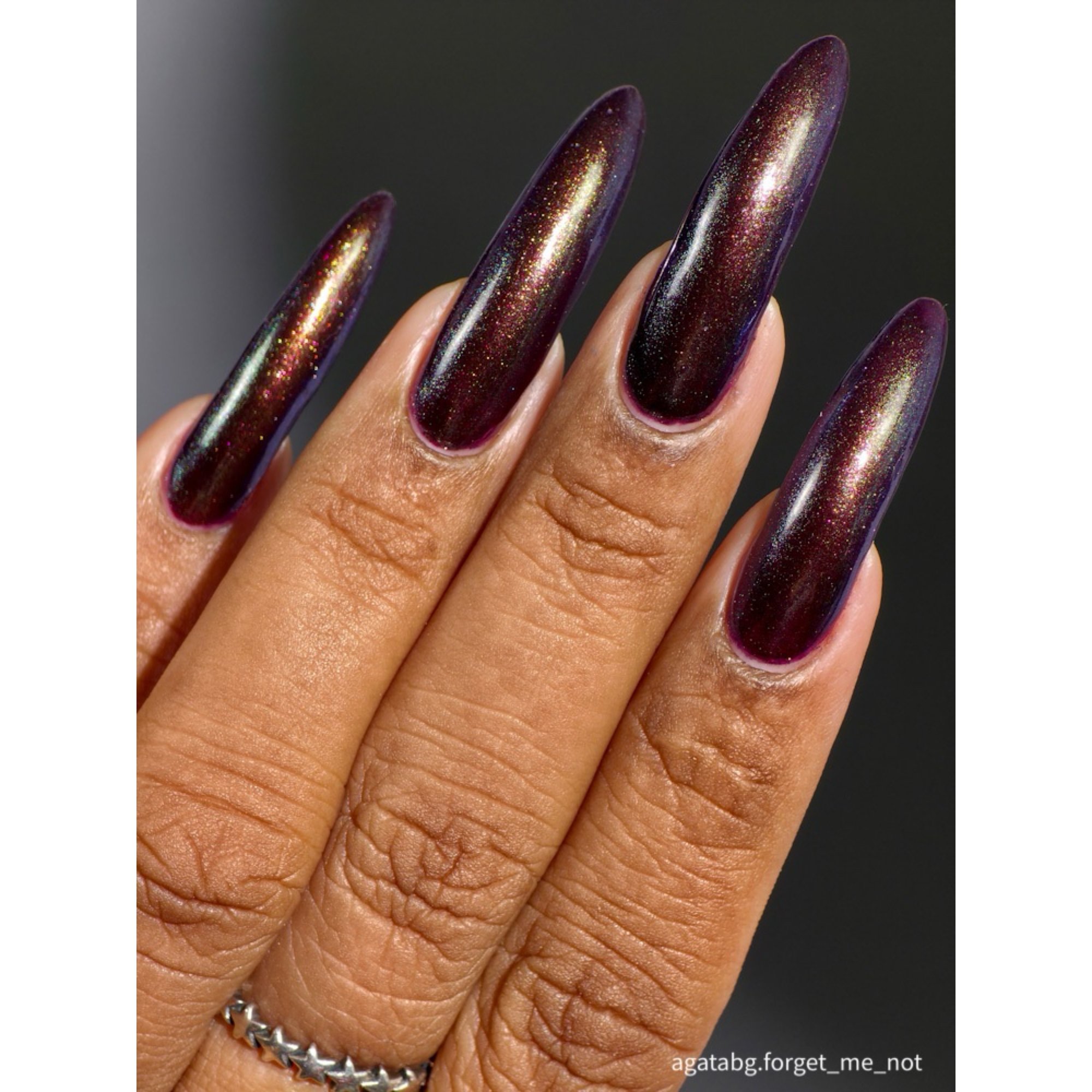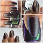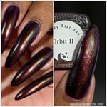 A stunning sequel to the original, Orbit II plunges you into the depths of a cosmic nebula. This polish features a deep, intoxicating wine base, infused with a luminous shimmer that shifts like distant starlight. Watch it dance from brilliant emerald green to a mysterious violet and finally to an electric, deep space blue. It's a universe of color for your fingertips.