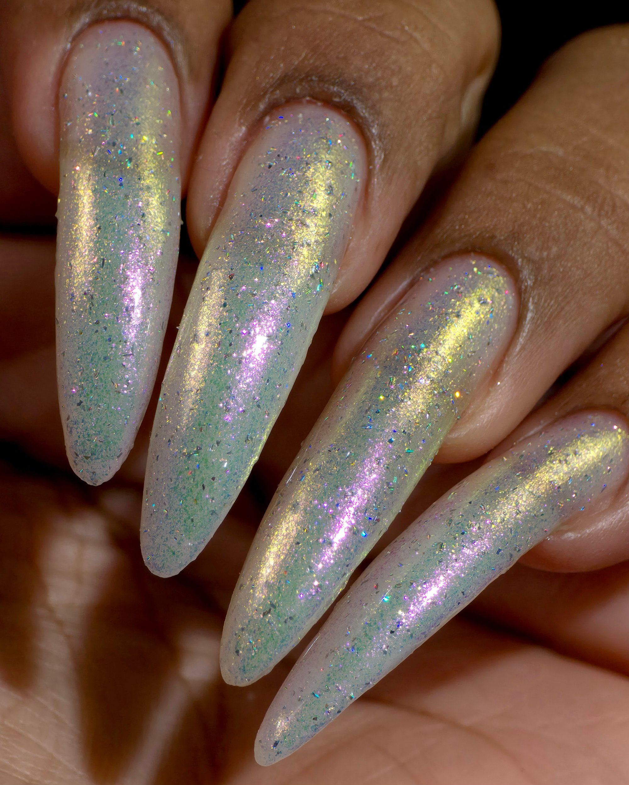 Please note: Because this collection features sheer, light-reflective shimmers, you may notice a slight warmth in the bottle over time. This is a normal material behavior and does not affect stability, safety, wear, or the appearance once applied to the nail.
