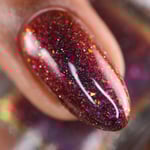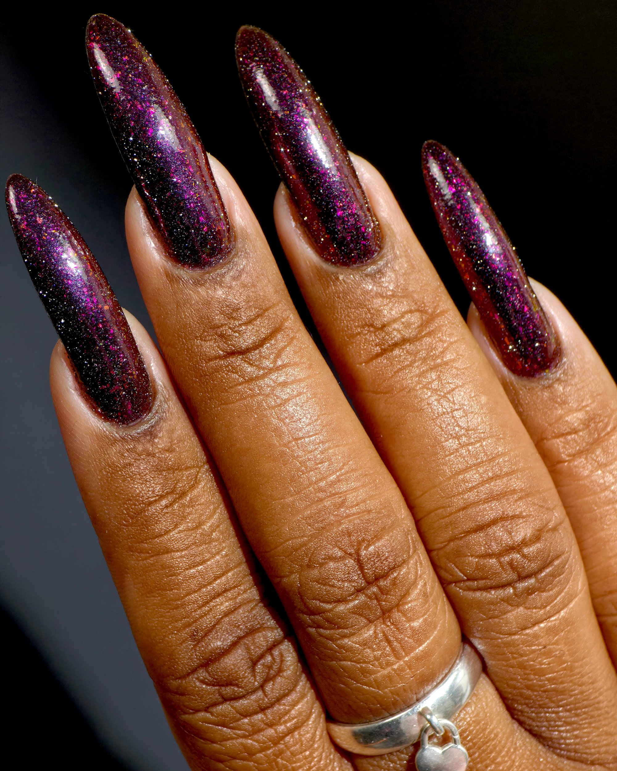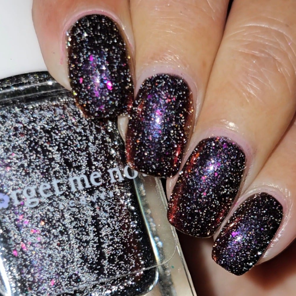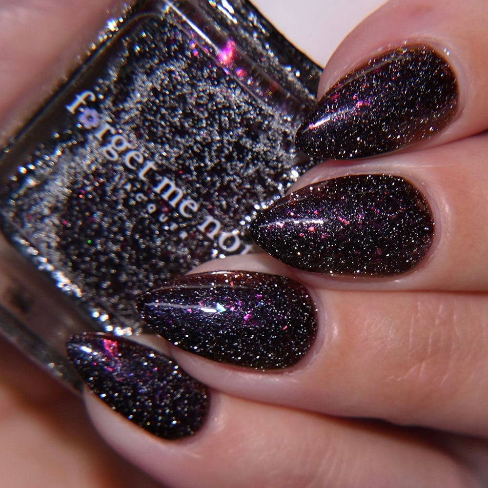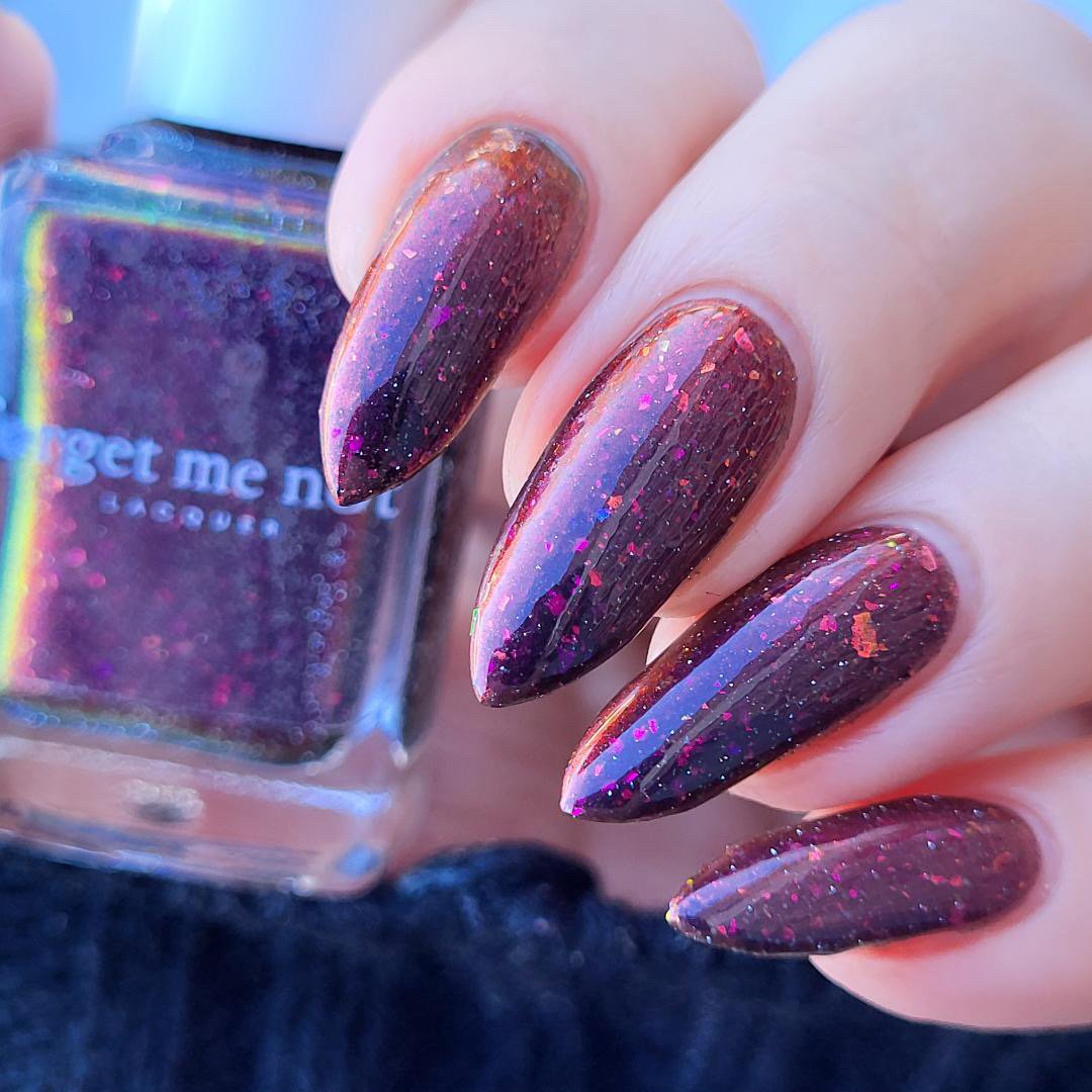 Inspired by the glowing red cosmic vortexes seen throughout Twilight Zone imagery, this shade captures the moment a dimensional anomaly. A black -to- red multi-chrome base infused with scattered silver reflective glitters and multi-tone chameleon flakes that mimic cosmic static. A surreal, fiery distortion of color, something you might glimpse just before reality bends.